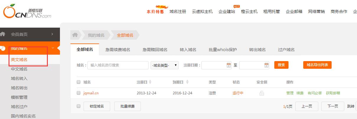 2、我的(de)域名,英文(wén)域名。