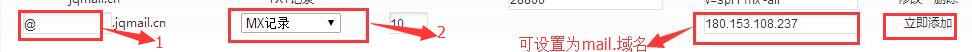 b、不(bù)能(néng)直接添加公網IP,除了(le)加一(yī)條MX記錄,還(hái)必須加一(yī)條A記錄。
